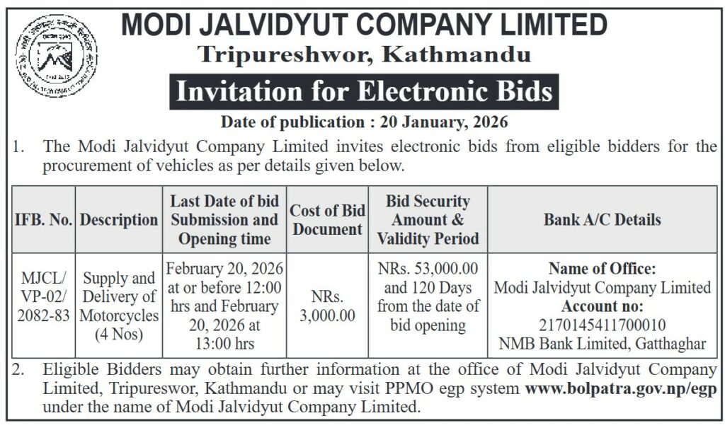 Invitation for Electronic Bid – Motorcycles (4 nos.)